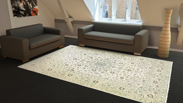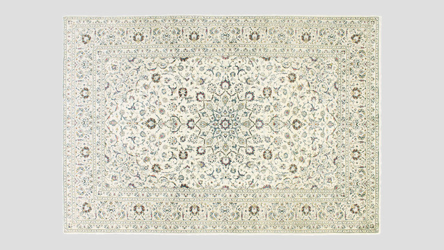 Die Farben Blau, Elfenbein und Rot gemeinsam mit dem prachtvollen, selten veränderten Muster lassen auch den frisch Teppich-Interessierten einen Keschan einfach erkennen. Er gilt seit jeher als der typische Perserteppich.